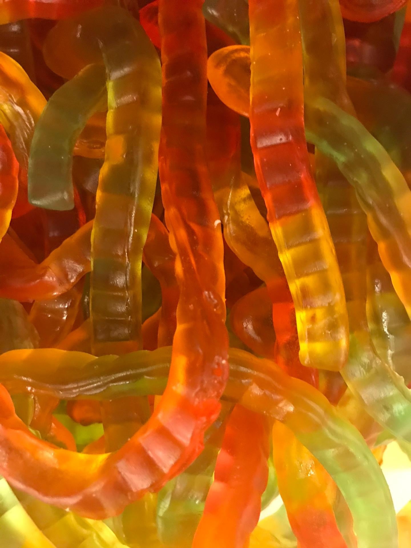 Reusachtige gekleurde slangensnoepjes met een zachte, chewy textuur en een fruitige zoetzure smaak. Deze vrolijke MEGA Slangen van Olleke Bolleke’s huismerk zijn een echte blikvanger in elke snoepzak. Perfect om te delen of gewoon lekker zelf van te genieten.
